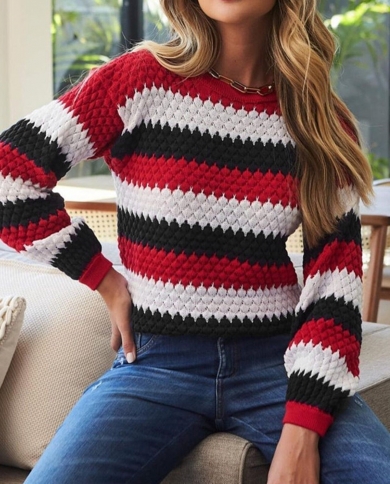2022 New Fashion Wave Striped Knitted Sweater Autumn Winter Long