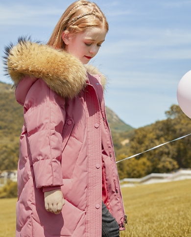 Childrens Down Jacket Girls Mid-length New Big Fur Collar Coat