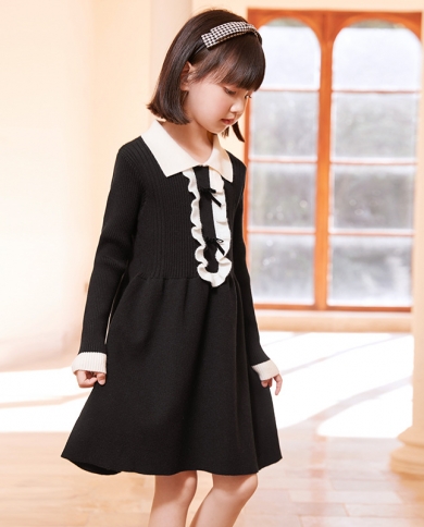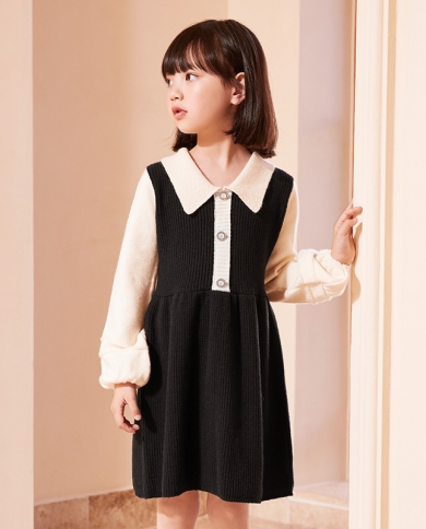 Childrens Clothing New Girls Autumn Waist Knitted Long-sleeved Sweater Dress