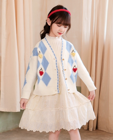 Girls Sweater Autumn New Lingge Jacket Childrens Knitted Cardigan