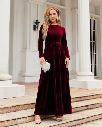 Autumn And Winter Elegant Temperament Long Velvet Solid Color Dress