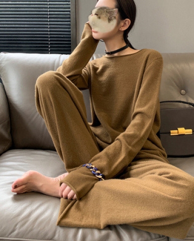 Cashmere Knitted Fashion Casual Slim Sweater Wide Leg Pants Two-piece