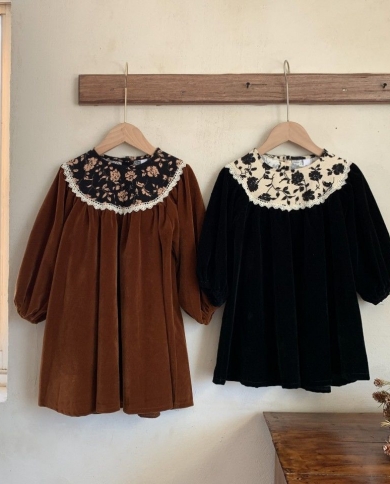 Girls Long Sleeve Velvet Fashion Royal Princess Dress