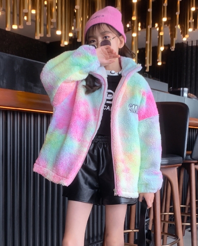 Girls Tie-dye Sweater New Childrens Lamb Fleece Sweater Jacket