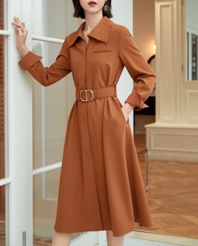 Fashion Long-sleeved V-neck Dress Autumn New Womens Temperament Mid-length Skirt