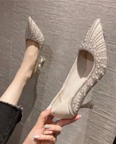 Shoes For Women 2022 New Pearl Medium Stiletto Summer Rhinestone