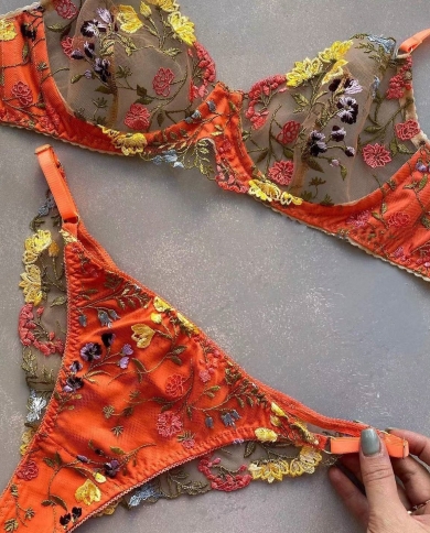Yimunancy 2 Piece Floral Embroidery Lingerie Set Women Transprent