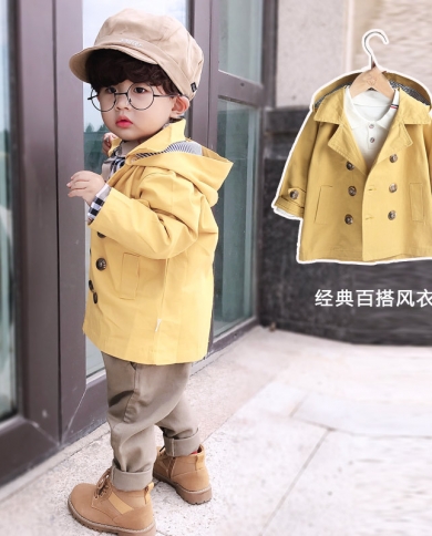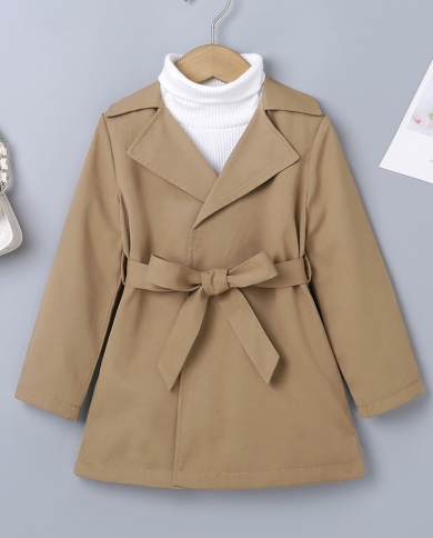 Childrens New Lapel Solid Color Mid-length Trench Coat With Buttons