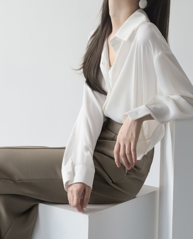 High-density Forged Face Drop-shoulder Long-sleeved Shirt Womens Autumn New Simple