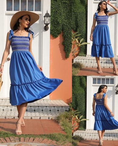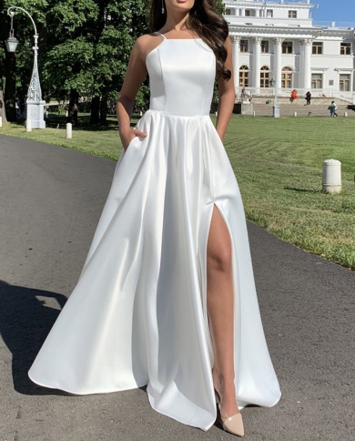 Womens Solid Color Sleeveless Elegant Banquet Bridesmaid Sling Dress