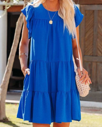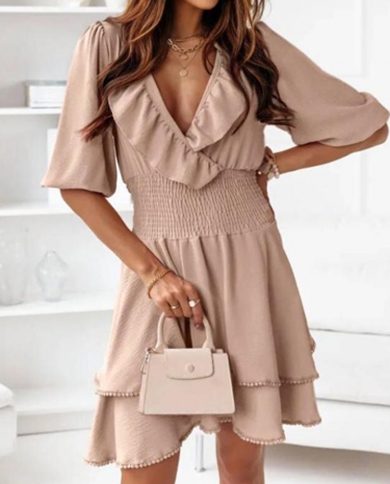 Short Sleeve V Neck Ruffle Mini Dress Ladies Summer Fashion