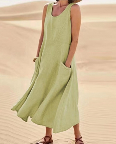 2022 Casual Sleeveless O Neck Loose Dress Women Summer Fashion