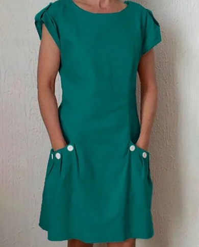 Casual Solid Color Short Sleeve Summer Dress Ladies Fashion O