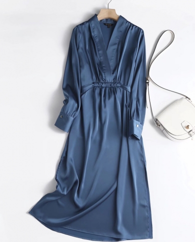 2022 Autumn Fashion Women Elegant Satin Dress Long Sleeve Office