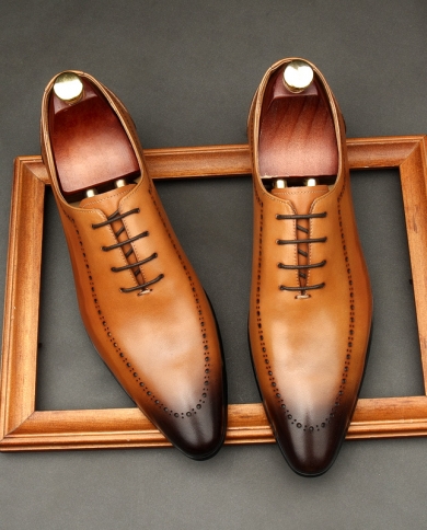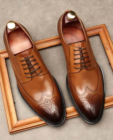 2022 New Mens Dress Shoes Oxford Genuine Leather Classic Brogue