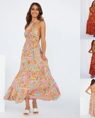 Womens Halter Neck Strap Large Swing Holiday Dress