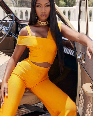 High Quality Orange Women Sets Orange Off The Shoulder