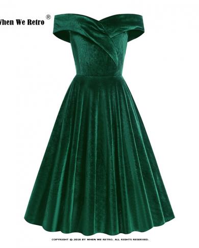 New Elegant Vintage Party Dress Slash Neck Off Shoulder Green