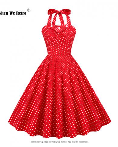 French Hepburn Style Red Polka Dot Halter Vintage Dress 2023