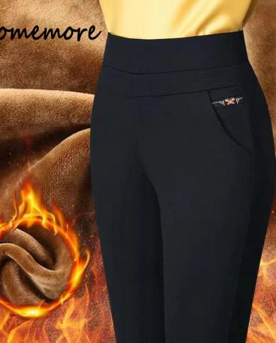 Comemore Warm Straight Pants Pockets High Waist Loose Woman Casual