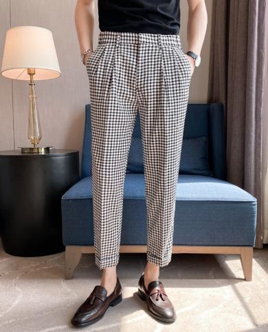 Mens Summer Thin Section Houndstooth Nine Point Pants Stylish Cool