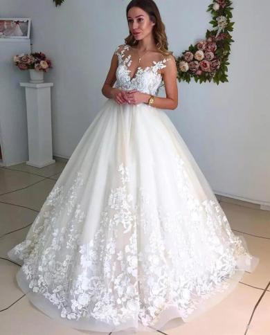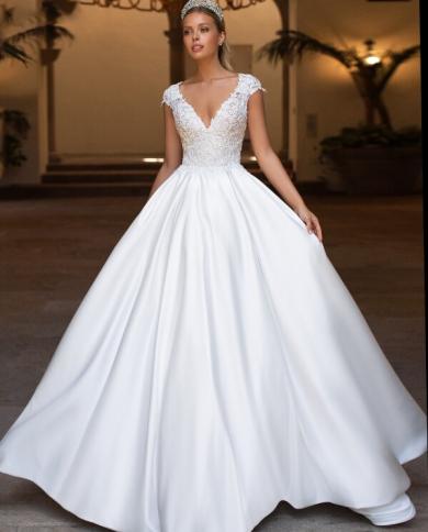 2023 Womens Wedding Dress Lace Appliqué Beaded Vneck Robe De