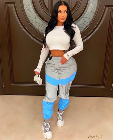 Autumn Winter Loose Hight Waist Flash Reflective Patchwork Jogger Pants