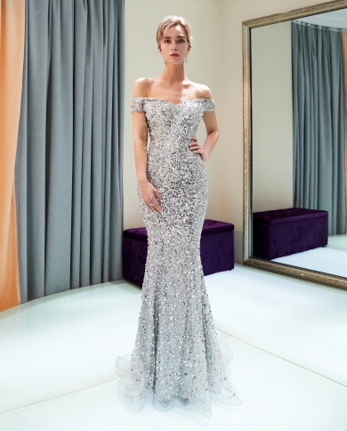 14381sparkly Off The Shoulder Sequins Evening Dresses Mermaid For Women