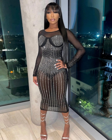 2023 New Fashion Design Dress Solid Diamonds O Neck Long
