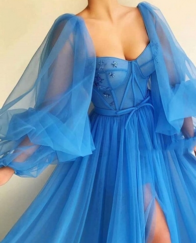 14313iena Elegant Ladies Soft Tulle Evening Dress Sheer Puff Sleeve