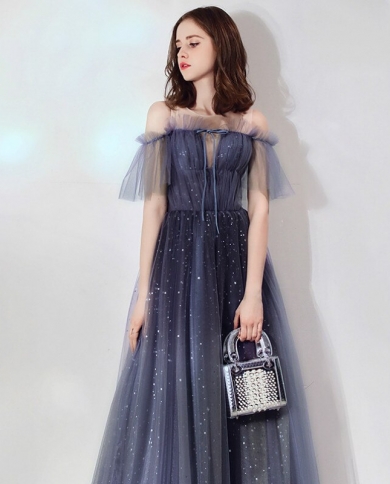 140322022 New Arrival Elegant A Line Blue Off The Shoulder