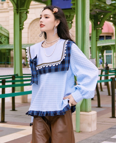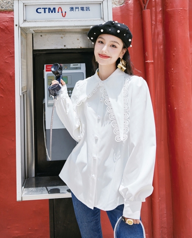 Navy Collar White Shirt Womens Urban Trend Womens Chiffon Top
