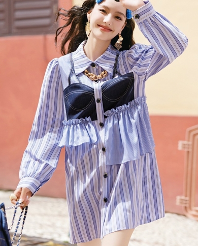 Casual Early Autumn New Long-sleeved Striped Shirt Dress Design Sense