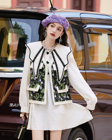 Early Autumn New Floral Vest Retro Temperament Long Sleeve Shirt