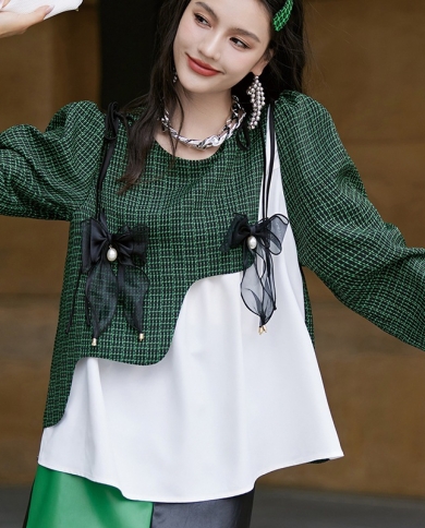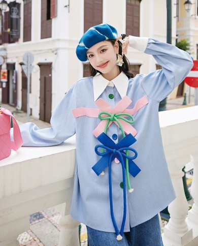 Detachable Bow Shirt Early Autumn Original Design Contrast Color Temperament