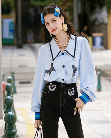 Early Autumn New Style Big Butterfly Collar Princess Shirt Female