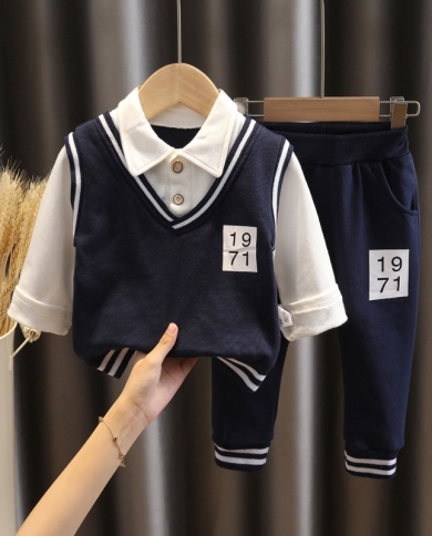 Childrens Preppy Style Lapel Trend Two-piece Set With Button