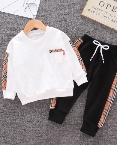 Boys‘ Plaid Crew Neck Casual Trend Top with Pockets Two-Piece