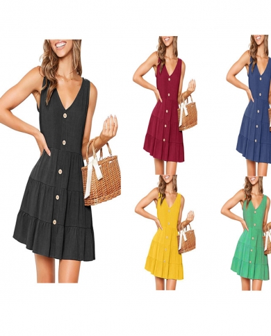 Kayotuas Women Dress Summer Pleated A Line Boho Casual Button
