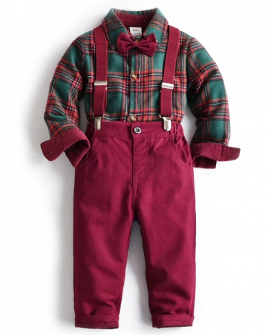 Long Sleeve Outfit Birthday Baby Boy Clothes Greenred Plaid Shirt