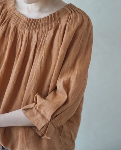 French Accordion Pleated Loose Linen Shirt Retro Romantic Pleated Plus