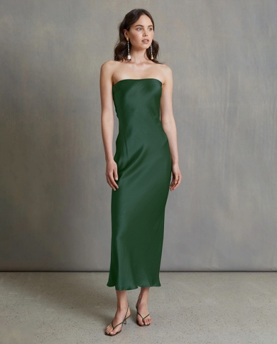 Womens Solid Color Satin Long Off-the-shoulder Strapless Sundress