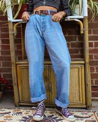 Retro Solid Color Casual Loose Wide Leg Washing Jeans Womens