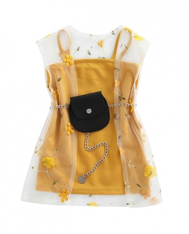 Fashion 3pcs Girls Clothes Solid Color Suspender Dress And Flower