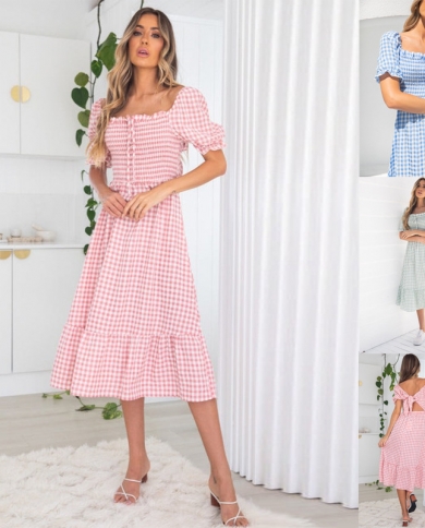 Cutubly Womens Dresses Pleated A Line Summer Womens O Neck
