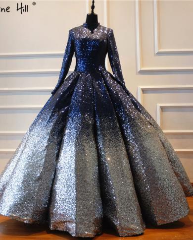 Blue Luxury Dubai Design Vneck Wedding Dresses Sequin Sparkle