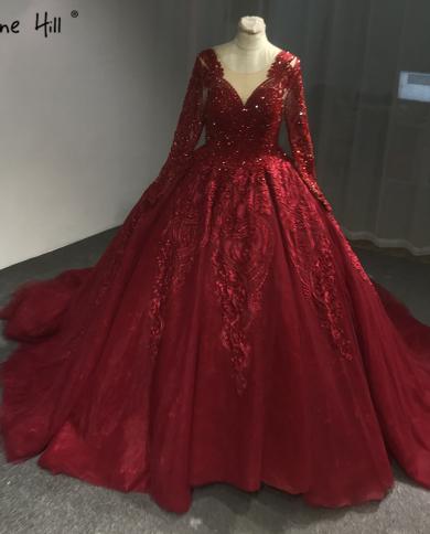 Wine Red Highend Luxury Vintage Wedding Dress Appliques Crystal