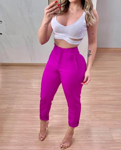Wefads Women Two Piece Set Summer Casual Solid Sleeveless Backless