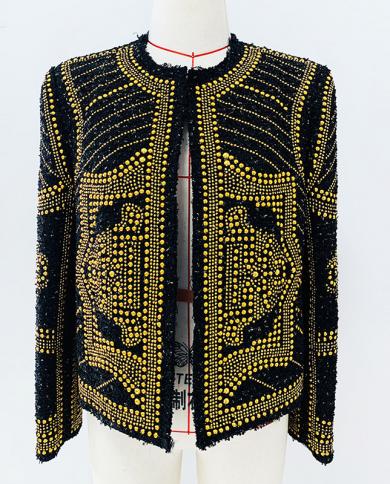 Handmade Beaded Tweed Jacket 2022 Autumn Winter Fashion New Metal
