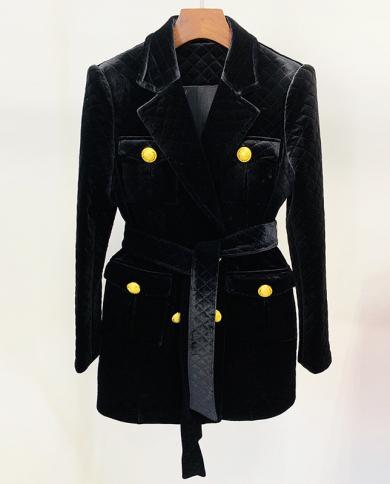 Velvet Jacket Coat Autumn Winter 2022 Double Belt Buckle Lion